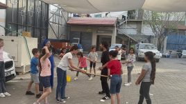 I bambini giocano all’esterno, nel cortile, e quando ci sono i bombardamenti tutti corrono a ripararsi dalle schegge, ma dopo pochi minuti sono di nuovo tutti a giocare fuori. È dall’inizio della guerra che vivono qui dentro.