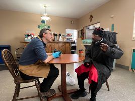 Padre Masolo al bar aperto dalle Felician Sisters per i poveri di Detroit (Foto Popoli e Missione)
