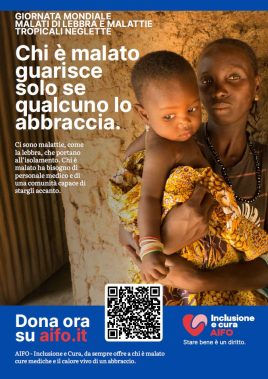 Domenica 25 gennaio si celebra la 73ª Giornata mondiale dei malati di lebbra, istituita da Raoul Follereau. In Italia l’iniziativa è promossa da Aifo – Associazione italiana Amici di Raoul Follereau Ets che da oltre 60 anni è in prima linea nel mondo per la lotta alla lebbra e per garantire il diritto alla cura e all’inclusione per tutti. Lo slogan della Giornata “Chi è malato guarisce solo se qualcuno lo abbraccia” pone l’accento sulla centralità della persona e non della malattia sottolineando l’importanza dell’inclusione, della cura e del sostegno per chi è malato e tutti coloro che vivono ai margini. In questa occasione Aifo sarà presente nelle piazze e parrocchie d’Italia grazie a centinaia di volontari con la vendita di prodotti. Una novità per il 2026 sarà che i prodotti saranno acquistabili online sul sito Aifo.