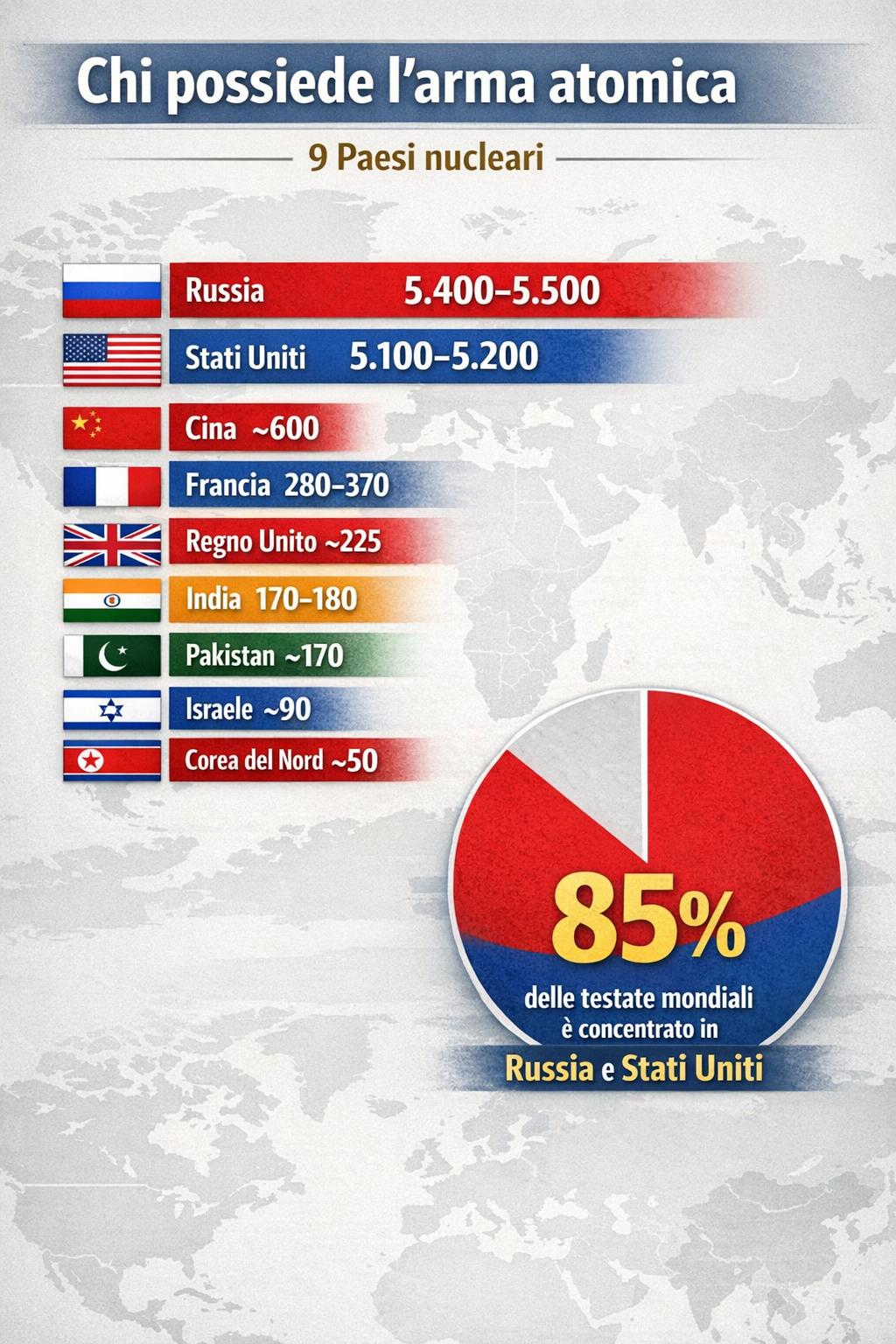 Ma, come ricordano le analisi dell’Ispi, l’invasione russa dell’Ucraina ha segnato una frattura profonda: nel 2022 Mosca ha sospeso le ispezioni e nel febbraio 2023 ha congelato la propria partecipazione al trattato. Con l’avvento della seconda amministrazione Trump, ogni prospettiva di rinnovo strutturato si è ulteriormente allontanata. Il presidente statunitense ha più volte criticato i limiti imposti agli arsenali americani, ritenuti inadeguati a fronte della rapida espansione della capacità nucleare cinese. Vladimir Putin aveva avanzato la proposta di una proroga tecnica di un anno dei limiti del trattato, ma Washington non ha mai formalmente aderito. La fine del New Start apre così una nuova fase di instabilità strategica. Uno dei nodi principali riguarda la Cina, che non è parte di alcun accordo di controllo nucleare. Secondo il Sipri, Pechino sta aumentando rapidamente il numero dei propri missili balistici intercontinentali e potrebbe avvicinarsi, entro la fine del decennio, alle capacità di Stati Uniti e Russia. Uno scenario che rischia di innescare un effetto domino: l’India potrebbe rafforzare il proprio deterrente per bilanciare la Cina, il Pakistan per rispondere all’India, mentre altri Paesi potrebbero rimettere in discussione le scelte di non proliferazione.