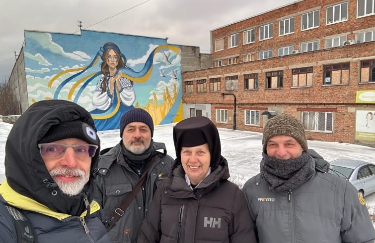 “Perché odiare? Se continuassi a odiare, poi a chi rimarrebbe il mio odio? Ai miei figli”. Yurij Lifansé pesa le parole, disegnando prospettive di pace mentre lo scorrere del tempo segna quattro anni di guerra. Yurij è responsabile della Comunità di Sant’Egidio a Lviv, città nella parte occidentale dell’Ucraina, prima tappa della quarantunesima missione umanitaria di Frontiere di Pace. Il gruppo di volontari ha base nella parrocchia di Maccio, diocesi di Como, e da una settimana è in viaggio nella martoriata terra ucraina. Quattro volontari – Giambattista Mosa, Laura Pini, Paolo Canavesi e Carmelo Pellicanò, affiancati da chi scrive qui – e un carico di 14 tonnellate di generi di prima necessità consegnati e distribuiti a Kharkiv, Izjum, Ivanchukivka, Shevchenkove, Rohan: dove la linea del fronte è prossima, annunciata da chilometri di reti anti droni che marcano le strade. Dove i volontari hanno incontrato centinaia di persone e alcune istituzioni locali, grazie alla fondamentale guida e mediazione linguistica garantita da sestra Olexia (Maria Poranicnha), suora della congregazione greco cattolica di San Giuseppe.