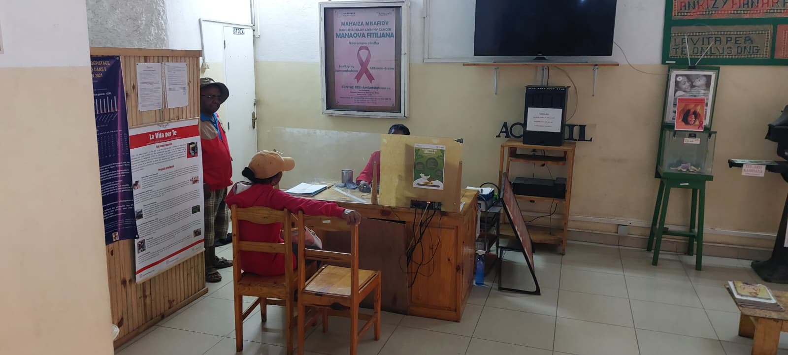 Il Centro medico Rex per la prevenzione dei tumori femminili. Ci accoglie Felana Rabotomanasa, responsabile delle missioni sanitarie del progetto, insieme a Maria, Eugenio e Sara, tre dei cinque giovani che stanno svolgendo il servizio civile internazionale per un anno, grazie al Coordinamento di Ong Cipsi.  Al centro Rex lavorano 30 persone, oltre ai medici.  C’è un ambulatorio prenatale, un centro per la malnutrizione, una farmacia galenica. Qui vengono svolte diverse attività sanitarie, tra cui una campagna di vaccinazioni contro l’Hpv. Obiettivo primario: la prevenzione dei tumori femminili. Il Madagascar ha infatti un tasso altissimo di positività dei tumori femminili nelle donne fino ai 25 anni: il 14%:  Durante tutto l’anno organizzano missioni che possono durare anche un mese per raggiungere i villaggi più isolati del Madagascar e permettere alle donne di effettuare mammografie, pap-test e altri screening oncologici.