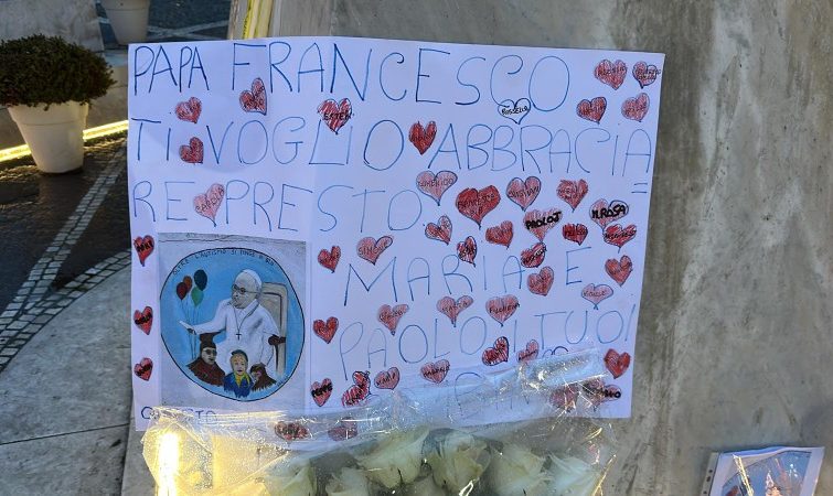 Come quello di Paolo che, tornato qualche giorno fa a Roma con sua famiglia per sottoporsi a dei controlli medici, ha lasciato fuori dal Policlinico Gemelli, in cui è ricoverato il Papa, un cartellone per Francesco, a cui, qualche anno fa, durante una catechesi del mercoledì nell’Aula Paolo VI, si divertì a sottrarre la papalina.