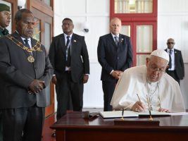 Papa in Papua Nuova Guinea: firma il Libro d’onore