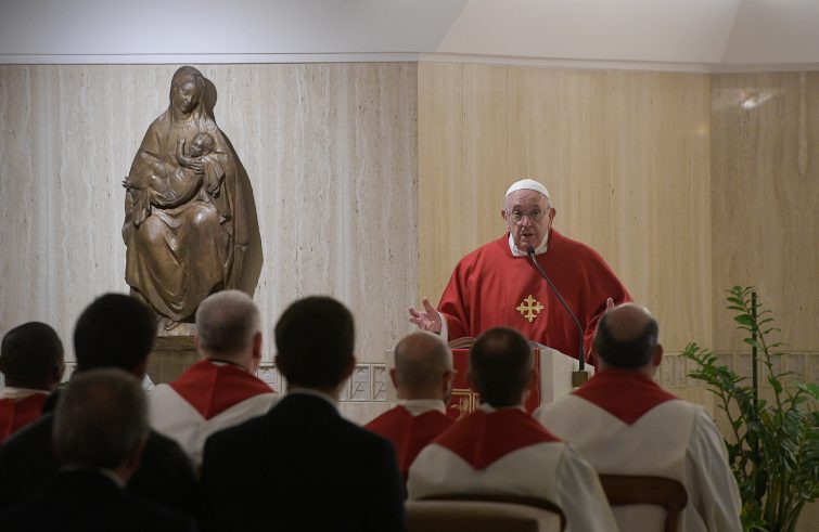 “Nella vita ordinaria, nelle imprese, nel lavoro, tante volte per avere un posto più alto si parla a questo funzionario, si parla a questo governante, si parla a questo di qua…, perché ‘ma, di’ al capo che mi porti su…’. Non è dono; questo è arrampicamento. Ma l’essere cristiani, l’essere sacerdoti, l’essere vescovi è soltanto un dono. E così si capisce il nostro atteggiamento di umiltà, quello che noi dobbiamo avere: senza merito alcuno. Soltanto, noi dobbiamo custodire questo dono, che non si perda. Noi siamo tutti unti dall’elezione del Signore; dobbiamo custodire questa unzione che ci ha fatto cristiani, ci ha fatto sacerdoti, ci ha fatto vescovi. Questa è la santità. Le altre cose non servono. L’umiltà di custodire. E così, il dono. Qual è il grande dono di Dio? Lo Spirito Santo! Quando il Signore ci ha eletto, ci ha dato lo Spirito Santo. E questa è pura grazia, è pura grazia. Senza merito nostro”.