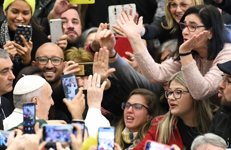 Il Papa ha fatto il suo ingresso in Aula Paolo VI intorno alle 9.10 e appena ha cominciato a percorrere a piedi il corridoio centrale, acclamato dalla folla, ha subito fatto l’ormai consueto “scambio dello zucchetto”, che ha poi ripetuto lungo il tragitto. Tra i 7mila fedeli presenti oggi in Aula Paolo VI, anche un gruppi di ministranti con l’abito bianco. Tra i doni ricevuti, spiccava un bouquet da sposa, con rose bianche e gialle. Moltissimi anche i biglietti e i disegni colorati dei bambini, con i quali Francesco si è fermato amabilmente a chiacchierare qualche minuto. Non sono mancate le foto da autografare, che il Papa ha siglato con un pennarello nero, insieme a una copia dell’esortazione apostolica dedicata ai giovani, “Christus vivit”.