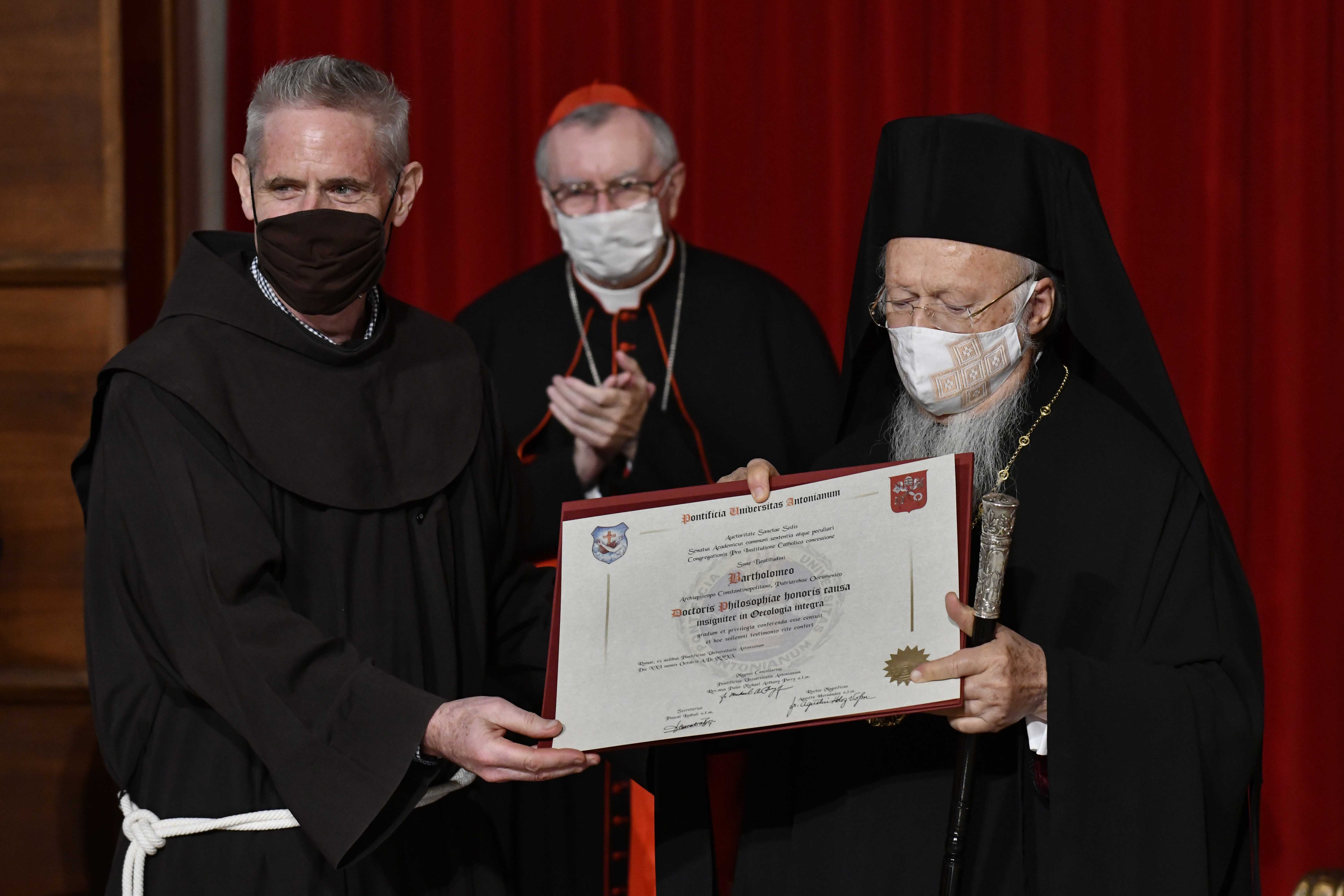 “Negli ultimi decenni, il mondo ha assistito ad un allarmante degrado ambientale – con il cambiamento climatico, la perdita della biodiversità e l’inquinamento delle risorse naturali – insieme a un crescente divario tra ricchi e poveri”. “Siamo tutti colpevoli in tante cose!”. Ha usato parole forti il patriarca ecumenico di Costantinopoli, Bartolomeo I, per denunciare lo stato di degrado e distruzione che l’uomo sta facendo subire al pianeta terra. Lo ha fatto questa mattina intervenendo all’apertura dell’anno accademico della Pontificia Università Antonianum con una prolusione dal titolo “Il Patriarcato ecumenico nel mondo contemporaneo: visione e testimonianza sociale”. In questa occasione, il rettore dell’Antonianum, Augustìn Hernàndez Vidales, ha conferito al patriarca il dottorato honoris causa in filosofia, alla presenza del card. Pietro Parolin, segretario di Stato vaticano. Conosciuto nel mondo come “Patriarca verde” per il suo impegno ormai pluridecennale a favore dell’ambiente, Bartolomeo non nasconde la sua preoccupazione per lo “stato di salute” della terra. “È evidente che la ragione del progresso è falsa e inopportuna, quando la casa dell’uomo viene distrutta e viene falcidiata la persona umana”, ha detto. “Con questo spirito, benediciamo ogni iniziativa, che contribuisca alla consapevolezza della gravità della presente crisi ecologica e dei problemi sociali correlati, nonché della necessità di un cambiamento radicale di mentalità e di un orientamento valutativo dell’uomo contemporaneo”. Nella prolusione, Bartolomeo chiama tutti all’impegno, sottolineando “l’urgenza di interventi mirati”. “È inconcepibile che la politica sostenga scelte che funzionano a scapito dell’ambiente naturale e della coesione sociale. E neppure l’economia è legittimata a rimanere nella sua propria legge e nel principio della massimizzazione della redditività, quando queste sono distruttive per l’ambiente e per la società. Inoltre, il prometeico ‘imperativo tecnologico’ che impone di produrre ciò che è tecnicamente possibile, senza interessarsi sugli effetti per l’uomo e per il creato, promuove comportamenti distruttivi nei confronti dell’ambiente”.