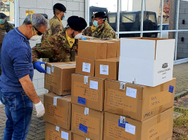 Continua l’impegno del Reggimento artiglieria a cavallo nel contrastare l’epidemia di coronavirus Covid-19, per la quale da settimane sono impegnati nella distribuzione gratuita di mascherine e dispositivi di protezione individuale nella provincia di Vercelli, affiancando l’avvocato e filantropo vercellese Carlo Olmo. Nella sola giornata di ieri i militari hanno consegnato 33mila mascherine chirurgiche e Ffp2, oltre che centinaia di guanti e gel igienizzanti, nelle mani dei sindaci di Vercelli, San Germano, Santhià, Tronzano, Rive, Costanzana, Borgo Vercelli, Crova, Stroppiana, Pezzana, Tricerro, Bianzè, Asigliano, Mazzè e Cavaglià. Venerdì 3 aprile è prevista una nuova donazione di 500 camici e 300 visiere Face Shield alla Asl 11 di Vercelli, dispositivi che si aggiungeranno ai 300mila già donati dall’avvocato Olmo e distribuiti nelle ultime 2 settimane dal Reggimento. “Siamo in costante contatto con l’avvocato Olmo che supportiamo nel trasporto delle donazioni affinché il necessario arrivi il prima possibile alle strutture sanitarie, ai medici di famiglia e a tutti coloro che, come noi dell’Esercito, sono in prima linea nel contrasto alla diffusione del virus”, le parole del colonnello Christian Ingala, comandante delle batterie a cavallo.