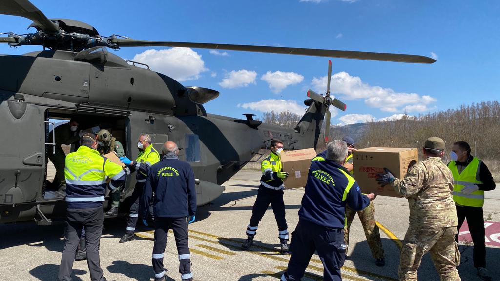 Continua l’impegno dell’Esercito italiano nell’emergenza sanitaria causata dalla pandemia di coronavirus Covid-19, impiegando anche due elicotteri Uh-90 del 7° Reggimento aviazione dell’Esercito “Vega”, che hanno trasportato dei dispositivi sanitari di prima necessità a L’Aquila e Firenze. I due velivoli, appartenenti alla Brigata aeromobile “Friuli”, si sono mossi su richiesta del Dipartimento della Protezione civile e, dall’aeroporto di Roma Urbe dove hanno prelevato il materiale sanitario, lo hanno consegnato negli aeroporti di L’Aquila e Firenze, dove i dispositivi di protezione individuale sono stati sistemati nei centri di raccolta regionali di Abruzzo e Toscana. L’Esercito italiano ha messo a punto un piano di trasporti aereo e terrestre integrato a quello della Protezione civile per accelerare la distribuzione dei dispositivi di protezione individuale. Il 7° Reggimento aviazione dell’Esercito “Vega” di Rimini è inoltre pronto in ogni momento per il trasporto in bio-contenimento di pazienti in gravi condizioni attraverso il sistema Isoark 36-2.