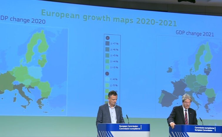 “La pandemia di coronavirus rappresenta uno shock violento per l’economia mondiale e per quella dell’Ue, con conseguenze socioeconomiche molto gravi. Nonostante la risposta politica rapida e integrata tanto a livello dell’Ue quanto a livello nazionale, quest’anno l’economia dell’Unione subirà una recessione di proporzioni storiche”. Secondo le previsioni economiche di primavera 2020, rese note oggi da Paolo Gentiloni a nome della Commissione europea, l’economia della zona euro subirà una contrazione record del 7,75% nel 2020 (rimbalzo +6,25% nel 2021); allo stesso modo l’economia dell’Ue dovrebbe contrarsi del 7,25% nel 2020 (6% circa nel 2021). Le proiezioni di crescita per l’Ue e la zona euro sono state riviste al ribasso di circa nove punti percentuali rispetto alle previsioni economiche d’autunno 2019.
