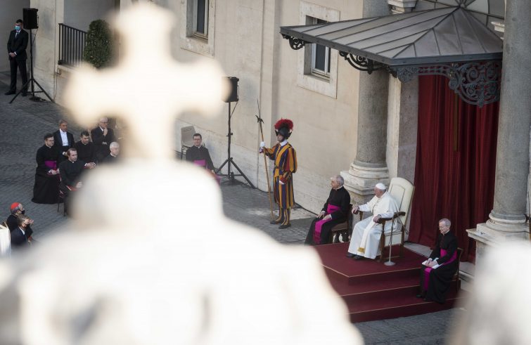I “cuidarores” svolgono “un ruolo essenziale nella società di oggi, anche se spesso non ricevono il riconoscimento e la rimunerazione che meritano”. Nella catechesi dell’udienza di oggi, pronunciata dal Cortile di San Damaso davanti a circa 500 fedeli, il Papa ha usato questo termine spagnolo per indicare coloro che si prendono cura degli ammalati. “Per uscire da una pandemia, occorre curarsi e curarci a vicenda”, ha esordito: “E bisogna sostenere chi si prende cura dei più deboli, dei malati e degli anziani”. “C’è l’abitudine di lasciare da parte gli anziani, di abbandonarli, è brutto questo”, ha aggiunto a braccio. “Il prendersi cura è una regola d’oro del nostro essere umani, e porta con sé salute e speranza”, ha spiegato Francesco. “Prendersi cura di chi è malato, di chi è lasciato da parte, è una cura umana, e anche cristiana”, ha proseguito a braccio. “Tutte le forme di vita sono interconnesse, e la nostra salute dipende da quella degli ecosistemi che Dio ha creato e di cui ci ha incaricato di prenderci cura”, ha affermato il Papa sulla scorta della Laudato sì: “Abusarne, invece, è un peccato grave che danneggia e che fa male, e che fa ammalare”. “Il migliore antidoto contro questo uso improprio della nostra casa comune è la contemplazione”, la tesi di Francesco: “Quando non si impara a fermarsi ad ammirare e apprezzare il bello, non è strano che ogni cosa si trasformi in oggetto di uso e abuso senza scrupoli, anche in un oggetto usa e getta”. “Ma come mai, non c’è un vaccino per questo, per la cura casa comune?”, si è chiesto il Papa ancora una volta fuori testo: “Qual è l’antidoto per non prendersi cura della casa comune? La contemplazione”.