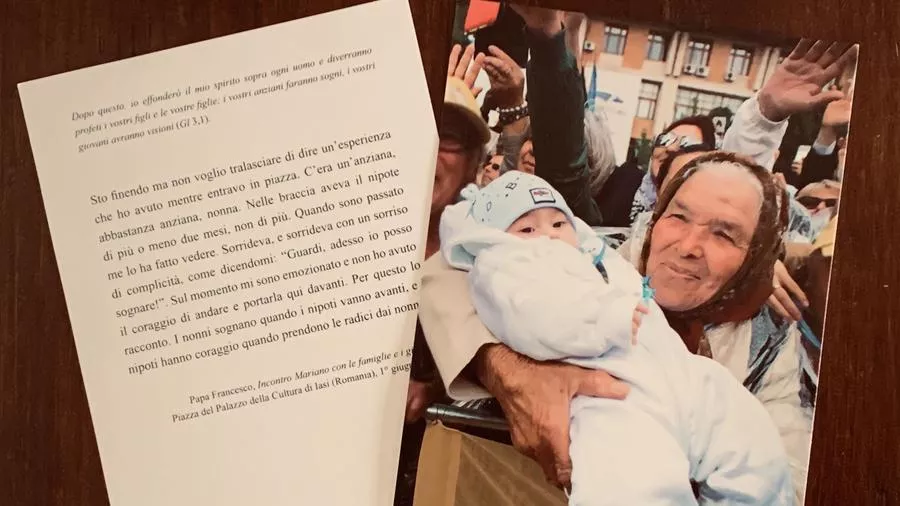 Da giorni il Papa consegna alle persone che riceve in udienza – vescovi, capi Dicastero, collaboratori e ospiti ricevuti nelle udienze nel Palazzo Apostolico – l’immagine della signora anziana di Iaşi che lo aveva emozionato durante il viaggio in Romania del 2019. Si tratta – spiega Vatican Insider – di un cartoncino a colori, in verticale, ideato dallo stesso Pontefice, che ritrae una nonna di Iasi, incontrata durante il viaggio in Romania del 2019, con il volto sorridente ed in braccio il nipotino di pochi mesi. Al passaggio tra la folla della papamobile, in occasione dell’incontro con i giovani e le famiglie nella Piazza del Palazzo della Cultura di Iaşi (1° giugno 2019), la nonna aveva alzato il bimbo oltre le transenne per mostrarlo a Francesco, che aveva ricambiato lo sguardo e si era emozionato, come aveva confessato lui stesso ai romeni: “Sto finendo ma non voglio tralasciare di dire un’esperienza che ho avuto mentre entravo in piazza. C’era un’anziana, abbastanza anziana, nonna. Nelle braccia aveva il nipote, più o meno di due mesi, non di più. Quando sono passato me lo ha fatto vedere. Sorrideva, e sorrideva con un sorriso di complicità, come dicendomi: ‘Guardi, adesso io posso sognare!’”. Sono le parole riportate nel retro del cartoncino voluto dal Papa. Secondo le informazioni raccolte da Vatican Insider, sarebbe stata questa la ragione della visita a sorpresa che Francesco ha compiuto a fine agosto nella sede della Libreria editrice vaticana. Nell’intestazione del cartoncino, viene citata invece una frase del profeta Gioele, che il Papa ripete spesso durante gli incontri con i giovani, per sottolineare l’importanza del legame tra le generazioni: “Dopo questo, io effonderò il mio spirito sopra ogni uomo e diverranno profeti i vostri figli e le vostre figlie; i vostri anziani, faranno sogni, i vostri giovani avranno visioni (Gl 3,1)”. Non è la prima volta che il Papa fa stampare un volantino come memorandum per questioni che gli stanno a cuore. Sul volo di andata per il viaggio apostolico in Cile, nel gennaio 2018, Bergoglio aveva fatto distribuire ai giornalisti in aereo l’immagine del bimbo di Nagasaki che trasportava sulle spalle il fratellino morto durante il bombardamento atomico.