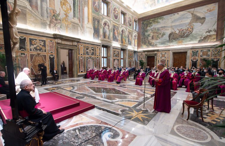 “Non dobbiamo stancarci di riservare ogni attenzione e cura alla famiglia e al matrimonio cristiano: qui voi investite gran parte della vostra sollecitudine per il bene delle Chiese particolari”. E’ l’appello del Papa, nell’udienza concessa oggi ai membri del Tribunale della Rota Romana, in occasione dell’inaugurazione dell’Anno giudiziario. “Lo Spirito Santo, che invocate prima di ogni decisione da prendere sulla verità del matrimonio, vi illumini e vi aiuti a non dimenticare gli effetti di tali atti”, il monito di Francesco: “innanzitutto il bene dei figli, la loro pace o, al contrario, la perdita della gioia davanti alla separazione”. “Possano la preghiera – i giudici devono pregare tanto – e l’impegno comune porre in risalto questa realtà umana, spesso sofferente”, l’auspicio del Papa: “una famiglia che si divide e un’altra che, di conseguenza, viene costituita pregiudicando quell’unità che faceva la gioia dei figli nella precedente unione”. Ad ogni vescovo, il Santo Padre ha chiesto di “proseguire con tenacia e portare a compimento un necessario cammino ecclesiologico e pastorale, volto a non lasciare al solo intervento delle autorità civili i fedeli sofferenti per giudizi non accettati e subiti. La fantasia della carità favorirà la sensibilità evangelica di fronte alle tragedie familiari i cui protagonisti non possono essere dimenticati”. In particolare, per il Papa, “è quanto mai urgente che i collaboratori del vescovo, in particolare il vicario giudiziale, gli operatori della pastorale familiare e soprattutto i parroci, si sforzino di esercitare quella diaconia di tutela, cura e accompagnamento del coniuge abbandonato ed eventualmente dei figli, che subiscono le decisioni, seppur giuste e legittime, di nullità matrimoniale”.