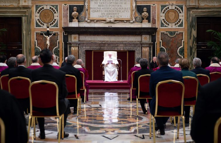 La riforma del processo di nullità matrimoniale “ha avuto e ha tante resistenze”. A rivelarlo è stato il Papa, che ha concluso l’udienza concessa oggi ai membri della Rota Romana, in occasione dell’inaugurazione dell’Anno giudiziario, con un’ampia parentesi a braccio. “Non vorrei finire oggi senza un commento più familiare tra noi, perché il nostro caro decano avrà fra alcuni mesi la giovinezza di 80 anni, e dovrà lasciarci”, il riferimento a mons. Vito Pinto, decano del Tribunale della Rota Romana che aveva portato il suo saluto all’inizio dell’udienza: “Io vorrei ringraziarlo: per il lavoro fatto, non sempre compreso, soprattutto vorrei ringraziare mons. Pinto per quella tenacia che ha avuto nel portare avanti la riforma del processo matrimoniale. Una sola sentenza, il processo breve, che è stato una novità: ed è naturale, perché il vescovo è giudice”. “Poco tempo dopo la promulgazione del processo breve – ha rivelato il Papa – mi ha chiamato un vescovo: una ragazza voleva sposarsi in chiesa ma era già stata sposata alcuni anni fa in chiesa. Ma è stata costretta a sposarsi perché era incinta”. Il vescovo ha riferito al Papa di aver rispettato tutta la procedura e di aver ascoltato dai testimoni la prova che la ragazza era stata forzata e che il matrimonio era nullo. “Cosa devo fare?”, la domanda del vescovo al Santo Padre. “Hai una penna in mano? Firma”, la risposta. “Questo è il giudizio, senza tante storie”, ha commentato Francesco: “Questa riforma, soprattutto il processo breve, ha avuto e ha tante resistenze. Dopo la promulgazione ho ricevuto tante lettere, e quasi tutti di notai che perdevano la clientela. E lì c’è il problema dei soldi”. “In Spagna si dice: ‘per i soli balla la scimmietta’”, il proverbio citato dal Papa, che ha riferito di aver visto “con dolore, in alcune diocesi, far resistenza di qualche vicario giudiziale che con questa riforma perdeva un certo potere, perché si accorgeva che il giudice non era lui ma il vescovo”. “Il giudice è il vescovo”, ha ribadito Francesco: “Va aiutato dal vicario generale, dal promotore di giustizia, ma lui è il giudice, non può lavarsene le mani”. Di qui la necessità di “tornare a questo, che è la verità evangelica”. Prima di iniziare il suo discorso, il Papa aveva fatto riferimento, a braccio, al suo attuale stato di salute: “Io dovrei parlarvi in piedi, ma voi sapete che la sciatica è un ospite molesto. Vi chiedo scusa e parlerò da seduto”.