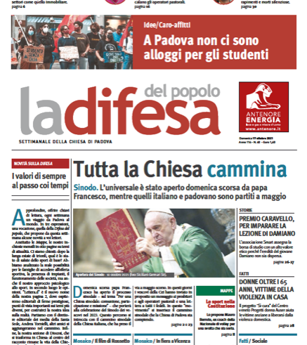 Infine, la sezione “Diocesi” si trasformerà in “Chiesa”. “Al centro del racconto del settimanale diocesano rimane la vita della Chiesa di Padova della quale ‘La Difesa del popolo’ è a servizio, le iniziative degli uffici pastorali e delle aggregazioni, il Sinodo diocesano, il cammino delle parrocchie sul territorio. Tutto questo entra da oggi in un dialogo costante con quanto la Chiesa vive in Italia e nel mondo, per consentire al lettore un’informazione ecclesiale quanto più completa possibile, dalla propria comunità al soglio di Pietro”.