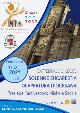 L’arcidiocesi di Lecce aprirà la fase locale del Sinodo dei vescovi domenica 17 ottobre alle 20 con la messa solenne celebrata da mons. Michele Seccia nella chiesa cattedrale. La celebrazione sarà trasmessa in diretta sulla pagina Facebook di Portalecce e su Telesalento (ch 73), sotto la regia di Tonio Rollo e con il commento di don Vito Caputo. Al termine della messa, l’arcivescovo reciterà la preghiera “Adsumus Sancte Spiritus”, orazione attribuita a Sant’Isidoro di Siviglia con la quale invocherà l’assistenza dello Spirito Santo sul cammino sinodale. Il testo dell’invocazione verrà distribuito nelle comunità parrocchiali per poter essere utilizzato come preghiera.