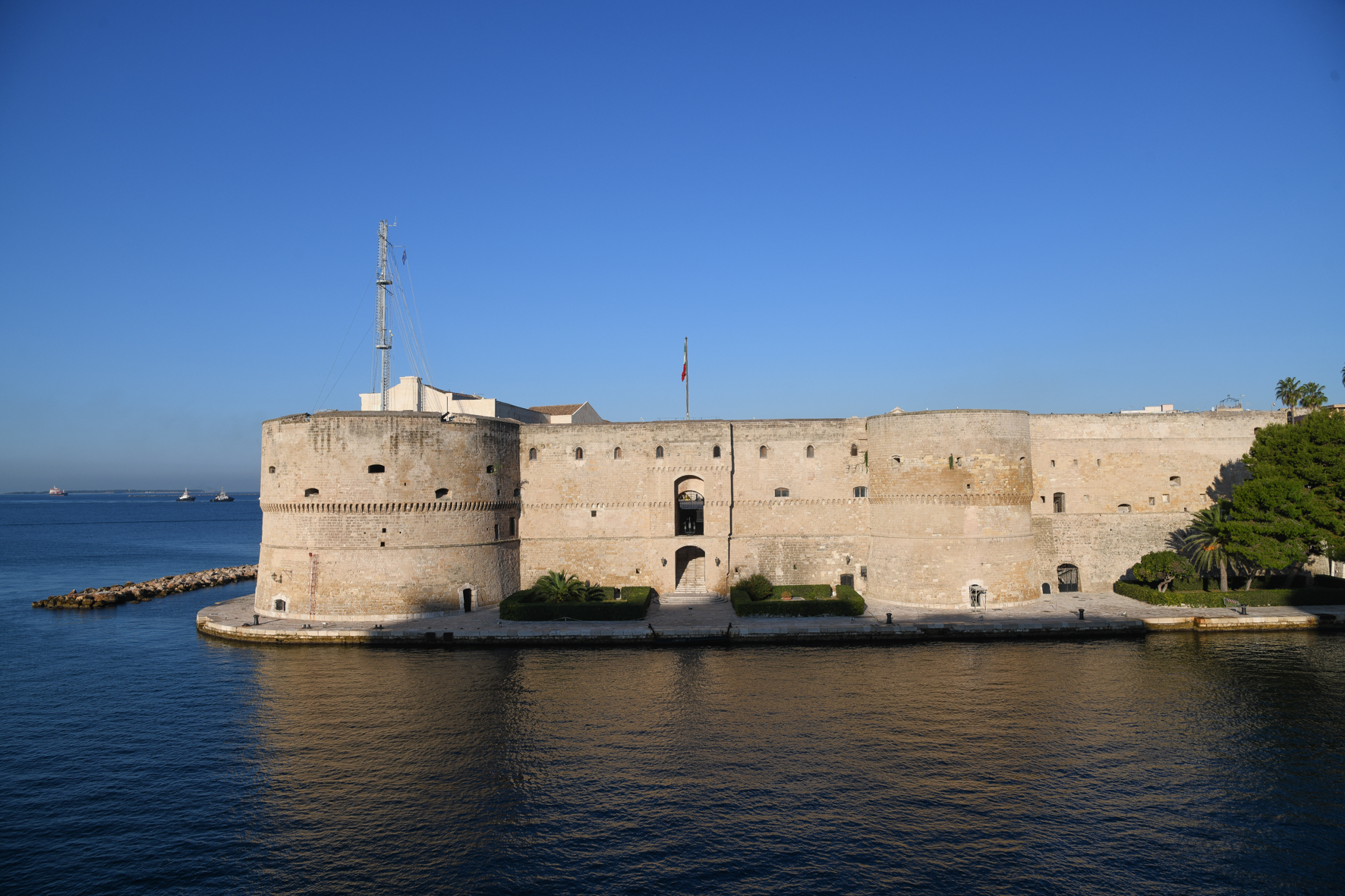 Tutto attorno, mentre parla Dadamo, ecco il transito di alcune piccole imbarcazioni di pescatori, sullo sfondo navi della Marina Militare, una barca con un gruppo di giovani ragazze che pratica sport, e diversi turisti attratti in Puglia dalle ricchezze del territorio e favoriti da alcuni giorni di clima primaverile.