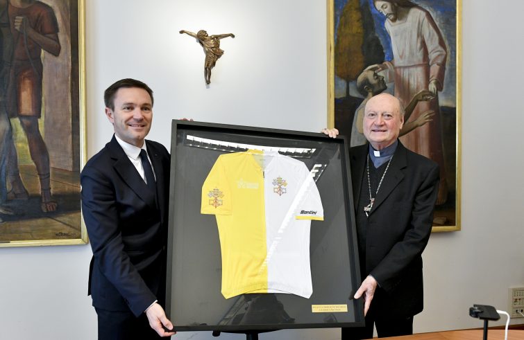 Il presidente Lappartient – accompagnato da Enrico Della Casa, vice presidente Uci e presidente Unione ciclistica europea; Rocco Cattaneo, membro direttivo Uci, e Renato Di Rocco che, da vice presidente internazionale, ha dato il via all’iter di affiliazione – ha insistito sul profondo rapporto tra fede e ciclismo, indicando la testimonianza di Gino Bartali. E, puntando sul riconoscimento di valori comuni come la fraternità e la pace, l’Uci si è detta disponibile a collaborare con l’associazione vaticana per costruire progetti di inclusione. In questo spirito, il presidente Lappartient ha consegnato al card. Ravasi una maglietta per Papa Francesco, come segno di amicizia, stima e desiderio costruire insieme, attraverso lo sport, ponti di dialogo tra tutti.