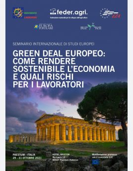 “Green deal europeo: come rendere sostenibile l’economia e quali rischi per i lavoratori” è il titolo del seminario internazionale di studi europei organizzato presso l’Hotel Ariston a Paestum, dal 29 al 31 ottobre, da Mcl-Movimento cristiano lavoratori e da Federagri-Federazione nazionale per lo sviluppo dell’agricoltura. La manifestazione, promossa con il contributo dell’Unione europea, vede anche la partecipazione di Eza, Centro europeo per gli affari dei lavoratori, la Fondazione italiana europea popolare e la Ipcm/Picm, una piattaforma, costituita legalmente a Madrid nel 2009, con l’obiettivo di promuovere azioni solidali in cooperazione internazionale allo sviluppo e migrazioni. I lavori inizieranno alle ore 15 di venerdì 29, con l’intervento di Alfonso Luzzi, segretario generale della Federazione nazionale per lo sviluppo dell’agricoltura di Mcl, seguirà il dialogo sugli aspetti legati all’economia ed i lavoratori con Antonio Di Matteo, presidente nazionale Mcl, Maria Rosaria Pilla, presidente provinciale Mcl, Sigrid Schramal, segretario generale Eza, e Vincenzo De Luca, presidente della Regione Campania. Seguirà l’intervento di Carmen Quintanilla, parlamentare spagnola e presidente dell’Associazione delle famiglie e dell’ambiente rurale, che affronterà la questione legata a i giovani e le donne in agricoltura ed il dialogo sociale dal punto di vista della penisola iberica. Sabato 30, dalle ore 9, si discuterà delle strategie dell’Unione europea per la crescita sostenibile ed inclusiva e del Green deal con Joseph Thouvenel, vice presidente della Confederazione francese dei lavoratori cristiani, e Veselin Mitov, vice presidente Eza. Alle ore 15 la tavola rotonda “Capitale umano fattore centrale del processo di trasformazione: la formazione dei lavoratori per nuovi posti di lavoro ecologici e nuove opportunità di istruzione e di formazione delle persone in nuove competenze”. La chiusura del seminario è prevista domenica 31 ottobre.