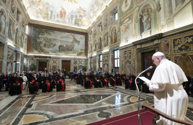 “Questo Premio viene giustamente attribuito nel nome del mio Predecessore. È dunque per me, insieme a voi, l’occasione per rivolgere a lui ancora una volta il nostro pensiero affettuoso, riconoscente e ammirato”. Durante la cerimonia di consegna del Premio Ratzinger, nella Sala Clementina, il Papa ha tributato un affettuoso omaggio a colui al quale il riconoscimento è intitolato. Fra i “grandi maestri della filosofia e della teologia del nostro tempo”, ha affermato Francesco, “va annoverato un teologo che ha saputo aprire e alimentare la sua riflessione e il suo dialogo culturale verso tutte queste direzioni insieme, perché la fede e la Chiesa vivono nel nostro tempo e sono amiche di ogni ricerca nella verità. Parlo di Joseph Ratzinger”. “Pochi mesi fa – ha ricordato il Papa – abbiamo reso grazie al Signore insieme a lui, in occasione del 70° anniversario della sua ordinazione sacerdotale; e sentiamo che egli ci accompagna con la preghiera, tenendo il suo sguardo continuamente rivolto verso l’orizzonte di Dio. Basta guardarlo per accorgercene”. “Oggi lo ringraziamo in particolare perché è stato anche esempio di dedizione appassionata allo studio, alla ricerca, alla comunicazione scritta e orale”, l’omaggio di Bergoglio: “E perché ha sempre unito pienamente e armoniosamente la sua ricerca culturale con la sua fede e il suo servizio alla Chiesa”. “Non dimentichiamo che Benedetto XVI ha continuato a studiare e scrivere fino alla fine del suo pontificato”, l’esortazione del Papa: “Circa dieci anni fa, mentre adempiva le sue responsabilità di governo, era impegnato a completare la sua trilogia su Gesù e così lasciarci una testimonianza personale unica della sua costante ricerca del volto del Signore. È la ricerca più importante di tutte, che egli poi ha continuato a portare avanti nella Chiesa. Ce ne sentiamo ispirati e incoraggiati, e gli assicuriamo il nostro ricordo al Signore e la nostra preghiera”. Citando il motto scelto quando divenne arcivescovo di Monaco – “cooperatores veritatis” – il Santo Padre ha affermato che tali parole “esprimono il filo conduttore delle diverse tappe di tutta la sua vita, dallo studio all’insegnamento accademico, al ministero episcopale, al servizio per la Dottrina della Fede – a cui fu chiamato da San Giovanni Paolo II 40 anni fa – fino al pontificato, caratterizzato da un luminoso magistero e un indefettibile amore per la verità”. “Cooperatores Veritatis è perciò anche il motto che campeggia sul diploma che viene consegnato ai premiati, perché continui a ispirare il loro impegno”, ha concluso il Papa: “Sono parole a cui anche ognuno di noi può e deve ispirarsi nella sua attività e nella sua vita”.