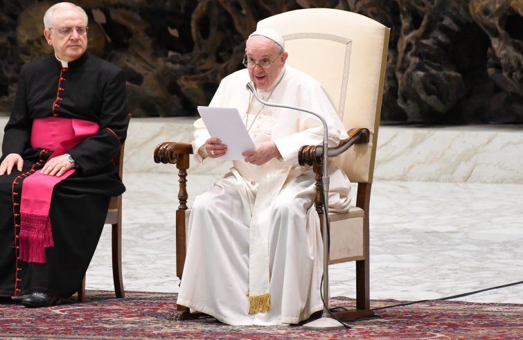 “Una società come la nostra, che è stata definita liquida, perché sembra non avere consistenza – io correggerò quel filosofo, dirò più di liquida: gassosa – questa società liquida, gassosa, trova nella storia di Giuseppe un’indicazione ben precisa sull’importanza dei legami umani”. Ne è convinto il Papa, che nella catechesi dell’udienza generale di oggi, dedicata alla figura di San Giuseppe, ha ricordato che “il Vangelo ci racconta la genealogia di Gesù, oltre che per una ragione teologica, per ricordare a ognuno di noi che la nostra vita è fatta di legami che ci precedono e ci accompagnano”. “Il Figlio di Dio, per venire al mondo, ha scelto la via dei legami, la via della storia”, ha proseguito Francesco a braccio: “Non è sceso nel mondo magicamente, ha fatto la strada storica che facciamo tutti noi”. “Penso a tante persone che fanno fatica a ritrovare dei legami significativi nella loro vita, e proprio per questo arrancano, si sentono soli, non hanno la forza e il coraggio per andare avanti”, ha detto il Papa, che ha concluso la catechesi “con una preghiera che aiuti loro e tutti noi a trovare in San Giuseppe un alleato, un amico e un sostegno: San Giuseppe, tu che hai custodito il legame con Maria e con Gesù, aiutaci ad avere cura delle relazioni nella nostra vita. Nessuno sperimenti quel senso di abbandono che viene dalla solitudine. Ognuno si riconcili con la propria storia, con chi lo ha preceduto, e riconosca anche negli errori commessi un modo attraverso cui la Provvidenza si è fatta strada, e il male non ha avuto l’ultima parola. Mostrati amico per chi fa più fatica, e come hai sorretto Maria e Gesù nei momenti difficili, così sostieni anche noi nel nostro cammino. Amen”.