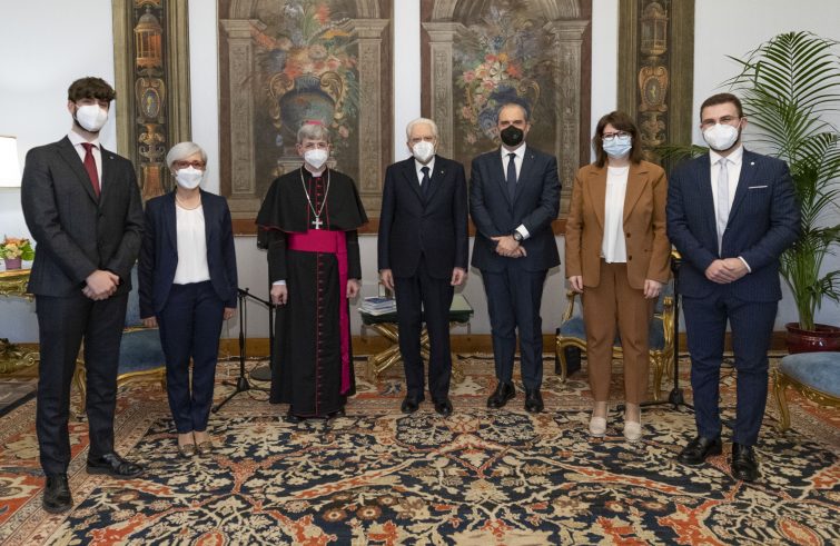 “Un colloquio molto cordiale e affettuoso”, secondo un comunicato diffuso dall’Azione Cattolica italiana, quello con il presidente della Repubblica, Sergio Mattarella, che al Quirinale ha ricevuto oggi una delegazione dei componenti della Presidenza nazionale di Ac, guidata da Giuseppe Notarstefano, presidente nazionale, e da mons. Gualtiero Sigismondi, assistente ecclesiastico generale dell’associazione. Con loro Annamaria Bongio, responsabile nazionale dell’Azione Cattolica dei ragazzi (Acr), Paola Fratini, vicepresidente nazionale Ac per il settore Adulti, Lorenzo Pellegrino, segretario nazionale del Movimento studenti di Azione Cattolica (Msac), Lorenzo Zardi, vicepresidente nazionale Ac per il settore Giovani.