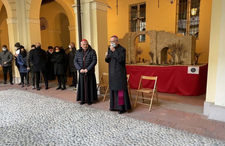Il vescovo Daniele Gianotti ha presentato l’ospite, poi è seguita una preghiera, conclusa con la benedizione dei presenti e del presepe.