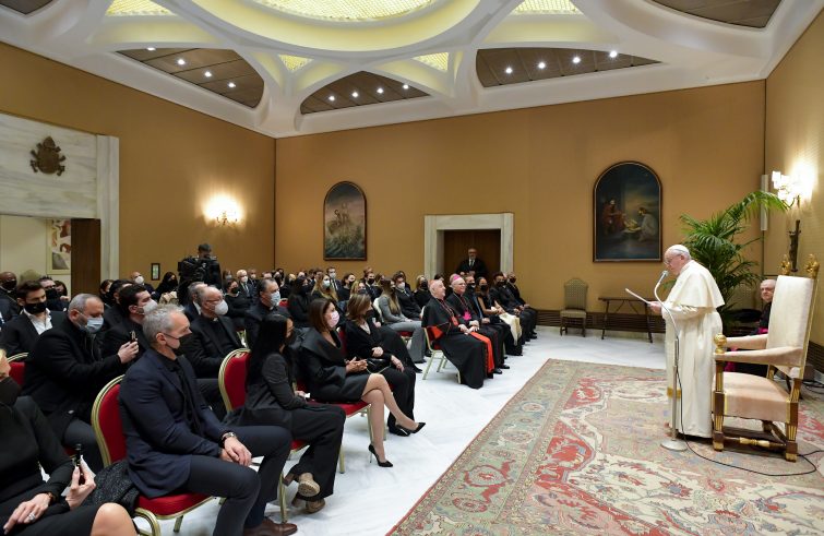 “Il Natale ci invita a fissare lo sguardo sull’evento che ha portato nel mondo la tenerezza di Dio – una parola che sottolineo, tenerezza, ci manca tanto – e così ha suscitato e continua a suscitare gioia e speranza. Tenerezza, gioia, speranza: sentimenti e atteggiamenti che anche voi artisti sapete ravvivare e diffondere con i vostri talenti”. Lo ha detto Papa Francesco ai Promotori, gli Organizzatori e gli Artisti del Concerto di Natale in Vaticano, promosso dalla Congregazione per l’Educazione Cattolica, ricevuti stamani in udienza. Il ricavato sarà devoluto a favore della Fondazione Pontificia Scholas Occurrentes e della Fondazione Salesiana Missioni Don Bosco. “La tenerezza nasce dall’amore, è come il linguaggio dall’amore – ha sottolineato il Pontefice -. Il gesto dell’amore è il più semplice”. Indicando il presepe, il Papa ha poi evidenziato come lì si veda “l’amore di una madre che abbraccia il bimbo appena nato, l’amore di un padre che custodisce e difende la propria famiglia”. “Vediamo pastori che si commuovono davanti a un neonato, angeli che fanno festa per la venuta del Signore. Tutto è permeato dal senso di stupore e di amore che porta alla tenerezza”. Nelle sue parole, dunque, la consapevolezza che “il linguaggio di Dio è vicinanza, compassione e tenerezza”. “Le tre cose insieme. San Francesco d’Assisi, con il suo presepe vivente a Greccio, volle rappresentare quanto era accaduto nella grotta di Betlemme, perché lo si potesse contemplare e adorare. Il Poverello era colmo di una tenerezza che lo portava alla commozione pensando alla povertà in cui il Figlio di Dio era nato. E proprio l’amore che traspare in questa scena genera gioia”.