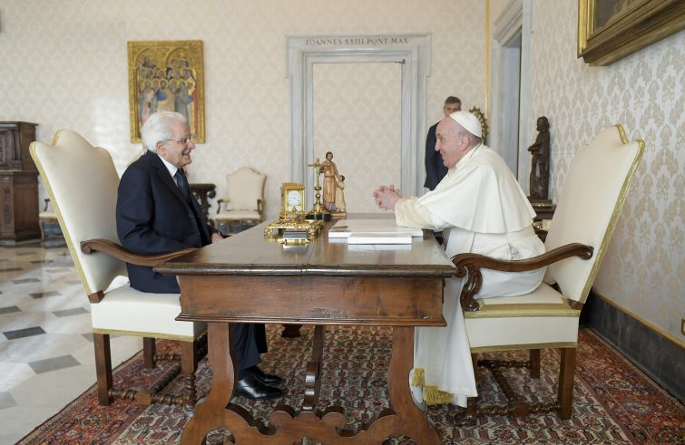 È durato circa 45 minuti – dalle 9.20 alle 10.05 – il colloquio privato tra il Papa e il presidente della Repubblica italiana, Sergio Mattarella, il quale si è successivamente incontrato con il cardinale segretario di Stato, Pietro Parolin, accompagnato da mons. Paul Richard Gallagher, segretario per i Rapporti con gli Stati. “Durante i cordiali colloqui in Segreteria di Stato – informa la Sala Stampa della Santa Sede – è stata espressa soddisfazione per le buone relazioni intercorrenti tra la Santa Sede e l’Italia, e ci si è soffermati su alcune questioni relative alla situazione sociale italiana, con particolare riferimento ai problemi della pandemia e alla campagna di vaccinazione in atto, alla famiglia, al fenomeno demografico e all’educazione dei giovani”. “Nel prosieguo della conversazione – si legge ancora nel comunicato relativo alla visita di congedo del presidente Mattarella, al termine del suo mandato settennale – sono state prese in esame tematiche di carattere internazionale, con speciale attenzione al Continente africano, alle migrazioni e al futuro e ai valori della democrazia in Europa”. Il Santo Padre ha donato al Capo dello Stato una pittura su ceramica raffigurante la basilica di San Pietro vista dai Giardini, oltre ai consueti volumi dei documenti papali, al Documento sulla Fratellanza umana e al libro sulla Statio orbis del 27 marzo 2020, a cura della Lev. Il presidente della Repubblica italiana è stato il primo Capo di Stato a ricevere in omaggio dal Papa il Messaggio per la Giornata mondiale della pace del 2022, ancora non pubblicato: a lui è stata consegnata la prima copia. Mattarella ha donato a Papa Francesco una stampa con veduta di Roma dal Quirinale e al volume sulla Madonna del cucito al Quirinale.