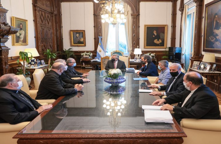 Il presidente della Repubblica dell’Argentina, Alberto Fernández, ha ricevuto ieri alla Casa Rosada la Commissione esecutiva della Conferenza episcopale argentina (Cea), presieduta da mons. Oscar Vicente Ojea, vescovo di San Isidro, in occasione del tradizionale saluto di Natale. Il presidente del Consiglio era accompagnato da Santiago Cafiero, ministro degli Esteri, commercio internazionale e culto, e da Juan Zabaleta, ministro dello Sviluppo sociale, oltre che dal segretario al Culto della Nazione, Guillermo Oliveri.