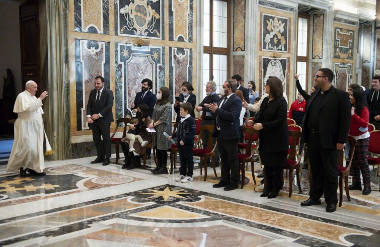 “È sempre una gioia incontrarvi in questo appuntamento natalizio”. È il saluto del Papa ai ragazzi dell’Acr (Azione Cattolica Ragazzi), una rappresentanza dei quali è stata ricevuta in Vaticano, insieme ai responsabili nazionali ed alcuni educatori. “Il vostro cammino di crescita nella fede di quest’anno è espresso dallo slogan ‘Su misura per te’, ispirato alle lavorazioni di sartoria”, ha detto Francesco: “Mi piace questo tema, che fa pensare agli abiti preparati su misura, con accessori adeguati alle varie persone. È bello perché ciascuno di noi è una persona unica. Non siamo fotocopie, siamo tutti originali! Ed è importante che ciascuno indossi ogni giorno con gioia il ‘vestito’ della propria originalità. Pensate, nella storia non c’è nessuno e non ci sarà mai nessuno uguale a voi. Ognuno di voi è una bellezza unica e irripetibile. Così vi vede Gesù, che vi ama come siete, anche se qualcuno non vi considera e può pensare che contiate poco”. “Gesù, che è venuto al mondo bambino, crede invece in un mondo a misura di bambino”, ha assicurato il Papa: “Ce lo ha fatto capire nascendo a Betlemme. Ma anche oggi si fa vicino ai ragazzi di ogni Paese e di ogni popolo, e lo fa tutti i giorni. È lo stile di Dio, che si descrive in tre parole: vicinanza, compassione e tenerezza”. “Di fronte a Gesù che si fa nostro prossimo, impariamo anche noi a farci prossimi”, l’invito ai ragazzi: “prossimi agli altri: ai familiari, agli amici, ai coetanei, ai bisognosi. Si può sempre fare qualcosa per gli altri senza aspettare che siano gli altri a fare qualcosa per noi. Si può sempre essere missionari del Vangelo, ed esserlo ovunque, a partire dagli ambienti in cui si vive: in famiglia, a scuola, in parrocchia, nei luoghi dello sport e del divertimento. Ma per fare questo, per assumere lo stile di Gesù, per essere suoi testimoni, bisogna prima stargli vicino, fargli posto. Non abbiate paura di dedicargli tempo nella preghiera, di parlargli dei vostri amici, di chiedergli forza nelle difficoltà, di raccontargli quando siete felici e quando avete paura, di chiacchierare di tutto con lui”. “Gesù dà al cuore una gioia piena, perché solo Lui è capace di rendere sempre nuova l’avventura della vita”, ha concluso Francesco: “Lui non si dimentica mai di voi; è sempre pronto a incoraggiarvi e non smette mai di credere in voi. Vi dà energia e coraggio ogni volta che andate a incontrarlo a Messa e guardandovi sorride; in particolare, quando fate dei gesti di condivisione e di solidarietà verso gli altri, soprattutto quando siete capaci di stare vicino a chi è solo, senza amici, in difficoltà; a chi soffre, e purtroppo ci sono tanti vostri coetanei che soffrono! Coraggio, Gesù conta su di voi!”.
