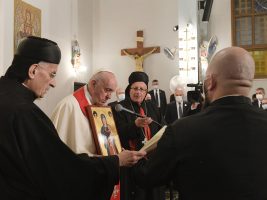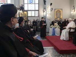 “Tutti siamo qui con i consacrati e le consacrate per ascoltare le vostre illuminante parole, Santo Padre, e ottenere la sua apostolica benedizione”. È il saluto del card. Béchara Boutros Raï, patriarca di Antiochia dei Maroniti, al Papa, all’inizio dell’incontro con i sacerdoti, religiosi e religiose, diaconi, catechisti, associazioni e movimenti ecclesiali di Cipro, nella cattedrale maronita di Nostra Signora delle Grazie a Nicosia, sede dell’arcieparchia di Cipro. “Sentiamo in questo momento l’eco della presenza millenaria dei Maroniti nell’Isola”, ha proseguito il cardinale, tracciando la storia dell’isola: “L’inizio della migrazione dal Libano fu nell’ottavo secolo ben prima dell’arrivo dei Crociati (1192). Già nel 1121 il Patriarca nomino un superiore al convento di San Giovanni Chrisostomos dove vivevano religiosi Maroniti. Nel tredicesimo secolo, il numero dei Maroniti era 80.000 ripartiti in 60 villaggi i quali calarono poi nel 1508 sotto l’Impero Ottomano a 39 per diverse difficoltà. Il primo vescovo Maronita fu eletto nel 1310. Il superiore generale dell’Ordine Libanese Maronita vi mandò due religiosi nel 1735 per fondare un convento e una scuola. Oggigiorno, dopo gli avvenimenti del 1974, e la divisione dell’Isola il numero dei Maroniti attinge 7000 circa e quello delle parrocchie dieci. I Maroniti di Cipro nutriscono ottime relazioni con la comunità latina, quella armena e con la Chiesa Greco-Ortodossa specialmente con il suo Arcivescovo. Sono anche ottimi i rapporti con la Presidenza della Repubblica, i ministri e i deputati, nonché con il Corpo Diplomatico”.