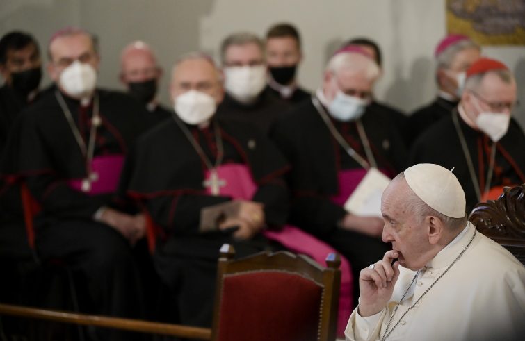 “Abbiamo bisogno di una Chiesa paziente. Di una Chiesa che non si lascia sconvolgere e turbare dai cambiamenti, ma accoglie serenamente la novità e discerne le situazioni alla luce del Vangelo”. Ne è convinto il Papa, che nella cattedrale maronita di Nicosia ha raccomandato ai sacerdoti, ai religiosi e alle religiose, ai diaconi, ai catechisti e alle associazioni e movimenti ecclesiali la pazienza di San Barnaba: “La pazienza di mettersi costantemente in viaggio; la pazienza di entrare nella vita di persone fino ad allora sconosciute; la pazienza di accogliere la novità senza giudicarla frettolosamente; la pazienza del discernimento, che sa cogliere i segni dell’opera di Dio ovunque; la pazienza di ‘studiare’ altre culture e tradizioni”. “Barnaba ha soprattutto la pazienza dell’accompagnamento”, ha sintetizzato Francesco: “non schiaccia la fede fragile dei nuovi arrivati con atteggiamenti rigorosi, inflessibili, o con richieste troppo esigenti in merito all’osservanza dei precetti. Li lascia crescere, li accompagna, li prende per mano, dialoga con loro”. “Barnaba non si scandalizza, come un papà e una mamma non si scandalizzano dei loro figli”, ha aggiunto a braccio: “Le divisioni, il proselitismo, non pagano”. “In quest’isola è prezioso il lavoro che svolgete nell’accogliere i nuovi fratelli e sorelle che giungono da altre rive del mondo”, l’omaggio del Papa: “come Barnaba, anche voi siete chiamati a coltivare uno sguardo paziente e attento, a essere segni visibili e credibili della pazienza di Dio che non lascia mai nessuno fuori casa, privo del suo tenero abbraccio”. “La Chiesa in Cipro ha queste braccia aperte: accoglie, integra, accompagna”, il ritratto tratteggiato da Francesco: “È un messaggio importante anche per la Chiesa in tutta Europa, segnata dalla crisi della fede: non serve essere impulsivi, non serve essere aggressivi, nostalgici o lamentosi, ma è bene andare avanti leggendo i segni dei tempi e anche i segni della crisi. Occorre ricominciare ad annunciare il Vangelo con pazienza, soprattutto alle nuove generazioni”. Ai vescovi, il Papa ha raccomandato: “siate pastori pazienti nella vicinanza, non stancatevi mai di cercare Dio nella preghiera, i sacerdoti nell’incontro, i fratelli di altre confessioni cristiane con rispetto e premura, i fedeli lì dove abitano”. “Siate pazienti con i fedeli, sempre pronti a incoraggiarli, ministri instancabili del perdono e della misericordia di Dio”, le parole riservate ai sacerdoti: “Mai giudici rigorosi, sempre padri amorevoli. L’opera che il Signore compie nella vita di ogni persona è una storia sacra: lasciamocene appassionare”. “Nella multiforme varietà del vostro popolo, pazienza significa anche avere orecchie e cuore per diverse sensibilità spirituali, diversi modi di esprimere la fede, diverse culture”, ha raccomandato il Papa: . La Chiesa non vuole uniformare, ma integrare tutte le culture, tutte le psicologie della gente con pazienza maternale, perché la Chiesa è madre. È quello che desideriamo fare con la grazia di Dio nell’itinerario sinodale: preghiera paziente, ascolto paziente per una Chiesa docile a Dio e aperta all’uomo”.