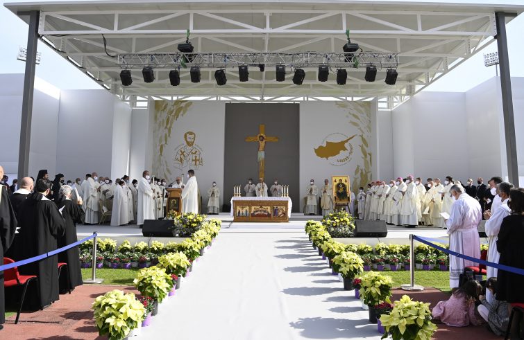“Annunciare il Vangelo con gioia”. È un altro “segno distintivo del cristiano”, che “libera dal rischio di una fede intimista, seriosa e lamentosa, e immette nel dinamismo della testimonianza”. Lo ha detto il Papa, nell’omelia della Messa allo GSP Stadium di Nicosia, in cui ha reso omaggio alla piccola comunità cattolica: “È bello vedervi e vedere che vivete con gioia l’annuncio liberante del Vangelo. Vi ringrazio per questo.” “Non si tratta di proselitismo, ma di testimonianza; non di moralismo che giudica, ma di misericordia che abbraccia; non di culto esteriore, ma di amore vissuto”, ha precisato Francesco, incoraggiando i fedeli cattolici ad “andare avanti su questa strada”: “Come i due ciechi del Vangelo, rinnoviamo l’incontro con Gesù e usciamo da noi stessi senza paura per testimoniarlo a quanti incontriamo! Usciamo a portare la luce che abbiamo ricevuto, usciamo a illuminare la notte che spesso ci circonda!”. “C’è bisogno di cristiani illuminati ma soprattutto luminosi, che tocchino con tenerezza le cecità dei fratelli”, la tesi di Francesco: “che con gesti e parole di consolazione accendano luci di speranza nel buio. Cristiani che seminino germogli di Vangelo nei campi aridi della quotidianità, che portino carezze nelle solitudini della sofferenza e della povertà”. “Il Signore Gesù passa anche per le strade di Cipro, ascolta il grido delle nostre cecità, vuole toccare i nostri occhi e il nostro cuore, farci venire alla luce, rinascere, rialzarci dentro”, ha concluso il Papa: “Rinnoviamo la nostra fiducia in Lui! Diciamogli: Gesù, crediamo che la tua luce è più grande di ogni nostra tenebra; crediamo che puoi guarirci, che puoi rinnovare la nostra fraternità, che puoi moltiplicare la nostra gioia”.