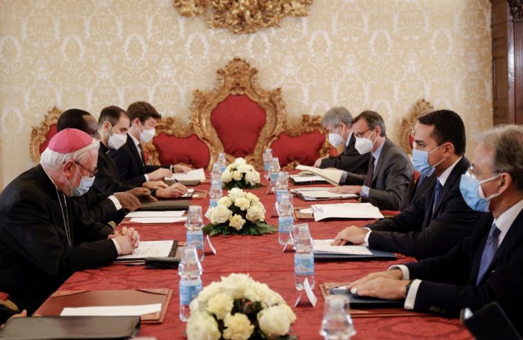 Il ministro degli Affari esteri e della Cooperazione internazionale, Luigi Di Maio, ha incontrato oggi in Vaticano il segretario per i Rapporti con gli Stati, mons. Paul Richard Gallagher. Ne dà notizia la Farnesina spiegando che il colloquio si è svolto “nell’ambito delle Consultazioni bilaterali tra Italia e Santa Sede, appuntamento consolidato per uno scambio di vedute ad ampio spettro sui più rilevanti temi dell’agenda internazionale”.