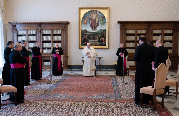 “Il primo dono di ogni esistenza cristiana è lo Spirito Santo. Non è uno dei tanti doni, ma il dono fondamentale. Lo Spirito è il dono che Gesù aveva promesso di inviarci”. A ribadirlo è stato il Papa, nella seconda udienza generale dedicata alla preghiera “come relazione con la Santissima Trinità, in particolare con lo Spirito Santo”. “Senza lo Spirito non c’è relazione con Cristo e con il Padre”, il monito di Francesco dalla Biblioteca privata del Palazzo apostolico, da dove viene trasmessa in diretta streaming la catechesi: “Perché lo Spirito apre il nostro cuore alla presenza di Dio e lo attira in quel vortice di amore che è il cuore stesso di Dio”. “Noi non siamo solo ospiti e pellegrini nel cammino su questa terra, siamo anche ospiti e pellegrini nel mistero della Trinità”, ha spiegato Francesco: “Siamo come Abramo, che un giorno, accogliendo nella propria tenda tre viandanti, incontrò Dio. Se possiamo in verità invocare Dio chiamandolo ‘Abbà – Papà’, è perché in noi abita lo Spirito Santo; è Lui che ci trasforma nel profondo e ci fa sperimentare la gioia commovente di essere amati da Dio come veri figli”. “Tutto il lavoro spirituale dentro di noi verso Dio lo fa lo Spirito Santo, questo dono – ha proseguito il Papa a braccio – che lavora per portare avanti la vita cristiana, verso il Padre, con Gesù”.