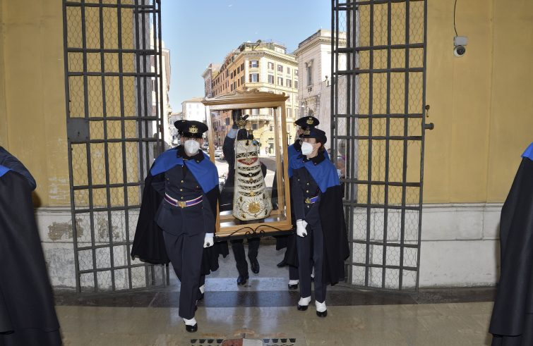 “Maria, la Donna per eccellenza, è icona anche per voi militari. Per la vostra capacità di prendervi cura, sempre pronti a venire incontro al popolo, ai cittadini, a coloro che abbiano bisogno; una cura che arriva non solo a fronteggiare ma a intravedere le necessità, anticipando le richieste e aggiungendo una dose straordinaria di umanità”. Lo ha ricordato l’ordinario militare per l’Italia, mons. Santo Marcianò, durante la messa nella chiesa principale dell’Ordinariato, Santa Caterina a Magnanapoli in Roma, a chiusura della peregrinatio della Vergine lauretana nelle basi militari. “In questo tempo di pandemia l’Aeronautica, come tutti i militari e le forze dell’Ordine, ha saputo vedere ciò che tanti non erano in grado di guardare, ha saputo rispondere all’emergenza del Paese con prontezza e finezza: dai soccorsi e trasporti in volo fino al ruolo essenziale per lo svolgersi del Piano vaccinale”. “È un’opera di giustizia, certamente; è certamente un dovere – ha rimarcato l’arcivescovo castrense – ma, ancor di più, è la capacità di prendersi cura, la consapevolezza che tutto nasce dall’amore, anche quando non ce ne accorgiamo. La presenza di Maria ha cambiato il modo di vivere il dolore di questo anno. Maria si è fatta pellegrina nelle caserme, nelle realtà militari, divenendo per voi sorgente di amore e di forza; si è fatta pellegrina nei luoghi del dramma, negli ospedali, nelle realtà di dolore. E Maria, come sempre, si è fatta e si fa pellegrina presso le donne, le persone innocenti condannate, violate, peccatrici; le ha raggiunge nelle proprie vite e nelle proprie case. Perché Maria è anche ‘casa’, che accoglie e fa rivivere. La Casa della Santa Famiglia di Nazareth, a Loreto, ce lo insegna”. In conclusione mons. Marcianò ha dedicato una riflessione anche a san Giuseppe, nell’anno a lui dedicato. “Egli custodisce Gesù e Maria, grazie al suo senso di giustizia pura, quella che non cerca il proprio interesse e il proprio possesso; senza questa giustizia di Giuseppe, Maria avrebbe potuto subire la sorte prevista per l’adultera. Egli custodisce la vita della Madre e del Figlio, perché anche la vita di chi custodisce e dona la vita va custodita. È questo il vostro compito! Portatelo avanti con giustizia, facendovi pellegrini accanto a tutti i volti di fratelli vittime di ingiustizie o afflitti da fragilità”.