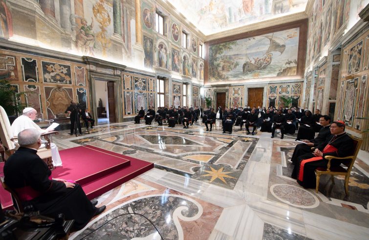 “Quando vi capita di sentirvi stanchi e sfiduciati, abbattuti per qualche prova o insuccesso – capita a tutti, questo – guardate indietro alla vostra storia, non per fuggire in un passato ‘ideale’, bensì per ritrovare lo slancio e l’emozione del ‘primo amore’”. È il consiglio del Papa alla comunità del Pontificio Collegio Filippino “de Nuestra Señora de la Paz y Buen Viaje”, ricevuta in udienza in occasione della ricorrenza dei 500 anni dall’evangelizzazione delle Filippine e dai 70 anni della fondazione del Collegio. “Fa bene ripercorrere i passaggi di Dio nella nostra vita, tutte le volte in cui il Signore ha incrociato la nostra strada, per correggere, incoraggiare, riprendere e rianimare”, ha assicurato Francesco: “Così abbiamo chiaro che il Signore non ci ha mai abbandonato, ci è sempre stato accanto in maniera ora più discreta, ora più evidente, anche nei momenti che ci sono sembrati più bui e più aridi”. “Pensiamo al passato, alla storia che ogni persona e ogni realtà portano con sé”, l’invito: “Andare indietro nel tempo, anche di secoli, come facciamo per la nascita della Chiesa nelle Filippine, è camminare con la memoria, calcando a ritroso le orme di coloro che ci hanno preceduti, per tornare alle origini della vostra fede con sentimenti di gratitudine e di stupore per quanto vi è stato donato”. “la memoria, quella memoria che è che è sempre alla base della vita quotidiana”, ha aggiunto a braccio: “non dimenticare, ricordare le radici. Un cristianesimo senza memoria è una enciclopedia”. “Ciò vale per un intero popolo, ma anche per ogni singola persona”, ha proseguito il Papa: “ricordare i momenti belli e brutti, buoni e cattivi”. Lo sguardo al passato fa ricordare coloro ai quali siamo debitori del più grande dei doni. Per i sacerdoti è poi cara in modo particolare la memoria della scoperta della vocazione, del momento in cui si è detto il primo, convinto ‘sì’ alla chiamata di Dio, nonché del giorno dell’ordinazione”.