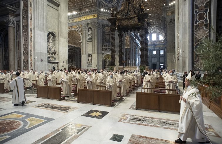 E’ iniziata con qualche minuto di anticipo la Messa del Crisma, momento di inizio dei riti del triduo pasquale. A presiederla, nella basilica di San Pietro, è il Papa, per la seconda volta in tempo di pandemia. Anche quest’anno, infatti, a causa dell’emergenza sanitaria ancora in corso, la presenza dei fedeli nella basilica vaticana è ristretta, in modo da rispettare le misure restrittive imposte per impedire la diffusione del contagio. La Messa del Crisma è concelebrata dal Santo Padre con alcuni cardinali e vescovi, con i superiori della Segreteria di Stato e con i membri del Consiglio presbiteriale della Diocesi di Roma. Nel corso della celebrazione eucaristica, come è tradizione il Giovedì Santo, i sacerdoti rinnovano le promesse fatte al momento della loro ordinazione. Il Papa benedirà poi l’olio degli infermi, l’olio dei catecumeni e il crisma.