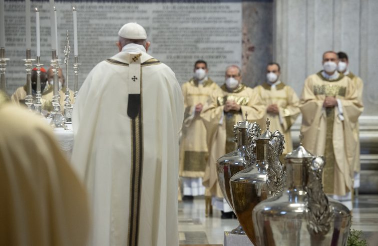 “C’è Croce nell’annuncio del Vangelo, è vero, ma è una Croce che salva”. Lo ha garantito il Papa, nella parte finale dell’omelia della Messa del Crisma, celebrata nella basilica di San Pietro. “Pacificata con il Sangue di Gesù, è una Croce con la forza della vittoria di Cristo che sconfigge il male, che ci libera dal Maligno”, ha proseguito Francesco: “Abbracciarla con Gesù e come Lui, già da prima di andare a predicare, ci permette di discernere e respingere il veleno dello scandalo con cui il demonio cercherà di avvelenarci quando inaspettatamente sopraggiungerà una croce nella nostra vita”. “Noi però non siamo di quelli che cedono”, è il consiglio che ci dà l’autore della Lettera agli Ebrei: “Noi non ci scandalizziamo, perché non si è scandalizzato Gesù vedendo che il suo lieto annuncio di salvezza ai poveri non risuonava puro, ma in mezzo alle urla e alle minacce di quelli che non volevano udire la sua Parola. Noi non ci scandalizziamo perché non si è scandalizzato Gesù dovendo guarire malati e liberare prigionieri in mezzo alle discussioni e alle controversie moralistiche, legalistiche, clericali che suscitava ogni volta che faceva il bene. Noi non ci scandalizziamo perché non si è scandalizzato Gesù dovendo dare la vista ai ciechi in mezzo a gente che chiudeva gli occhi per non vedere o guardava dall’altra parte. Noi non ci scandalizziamo perché non si è scandalizzato Gesù del fatto che la sua predicazione dell’anno di grazia del Signore – un anno che è la storia intera – abbia provocato uno scandalo pubblico in ciò che oggi occuperebbe appena la terza pagina di un giornale di provincia. E non ci scandalizziamo perché l’annuncio del Vangelo non riceve la sua efficacia dalle nostre parole eloquenti, ma dalla forza della Croce. Dal modo in cui abbracciamo la Croce annunciando il Vangelo – con le opere e, se necessario, con le parole – si manifestano due cose: che le sofferenze procurateci dal Vangelo non sono nostre, ma le sofferenze di Cristo in noi e che non annunciamo noi stessi, ma Cristo Gesù Signore e noi siamo servitori a causa di Gesù”.