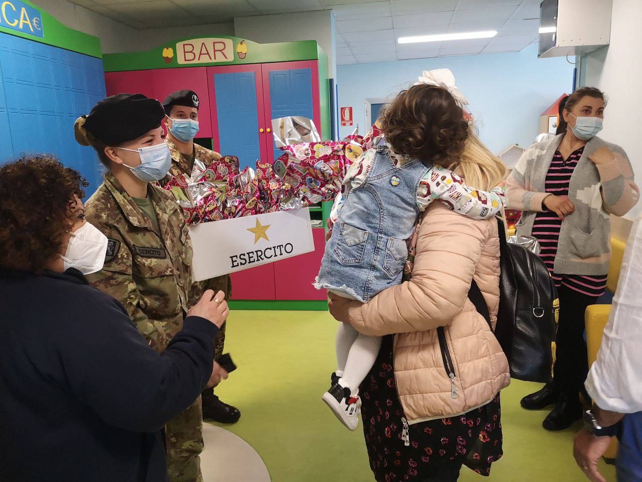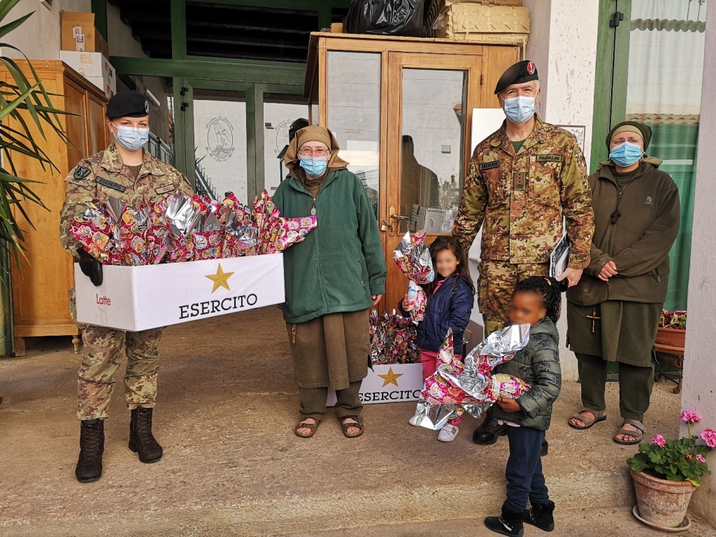 In questo periodo di feste pasquali, la Brigata “Aosta” scende in campo su tutto il territorio italiano per la solidarietà, sostenendo le cure contro il neuroblastoma attraverso le uova dell’Associazione per la lotta al neuroblastoma e dell’European neuroblastoma association, distribuite in diversi ospedali pediatrici siciliani. A Messina il generale Giuseppe Bertoncello, comandante della Brigata “Aosta”, assieme al rettore dell’Università di Messina Salvatore Cuzzocrea ed una rappresentanza di medici e sanitari, ha consegnato le uova di cioccolato ai bambini ricoverati nel reparto di neonatologia infantile e pediatria dell’ospedale “G. Martino”. A Palermo, gli uomini e le donne del Reggimento logistico dell’“Aosta” hanno consegnato le uova solidali alla Missione “Speranza e Carità” di Biagio Conte, al reparto di oncoematologia pediatrica dell’ospedale Civico, all’ospedale pediatrico “Giovanni Di Cristina” ed al reparto pediatrico Ismett, Istituto Mediterraneo per i trapianti e terapie ad alta specializzazione. A Gela, come riportato sul sito dell’Esercito italiano, il Raggruppamento “Sicilia Occidentale” dell’operazione “Strade Sicure”, su base Reggimento “Lancieri di Aosta”, con personale del 4° Reggimento genio, ha donato generi di prima necessità alla parrocchia San Domenico Savio, che li distribuirà alle famiglie bisognose.