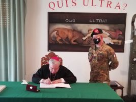 L’arcivescovo ordinario militare per l’Italia (Omi), mons. Santo Marcianò, si è recato in visita all’11° Reggimento Bersaglieri ad Orcenico Superiore ed ha presieduto la messa con la cerimonia di consacrazione e dedicazione della cappella della Caserma “Giovanni Leccis” alla Beata Vergine Maria del Cammino, patrona del Corpo dei Bersaglieri, ed a San Giovanni XXIII Papa, patrono dell’Esercito italiano. Alla funzione religiosa, svoltasi nel rispetto delle misure anti Covid-19, era presente il generale Roberto Banci, Comandante della 132^ Brigata corazzata “Ariete”, assieme ai sindaci dei comuni di Zoppola e Casarsa della Delizia, Francesca Papais e Lavinia Clarotto, ed i rappresentanti dell’Associazione nazionale Bersaglieri, tra i quali il presidente regionale per il Friuli Venezia Giulia, Giuseppe Iacca, e il presidente regionale per il Veneto, Antonio Bozzo. Al termine della cerimonia, come raccontato sul sito dell’Esercito italiano, mons. Marcianò ha firmato l’Albo d’onore nella sala museale della caserma e si è intrattenuto a colloquio con il colonnello Diego Cicuto, Comandante dell’11° Reggimento Bersaglieri, sottolineando l’importanza di un luogo di culto per la preghiera all’interno delle strutture militari dove operano uomini e donne in divisa, al servizio quotidiano del Paese.