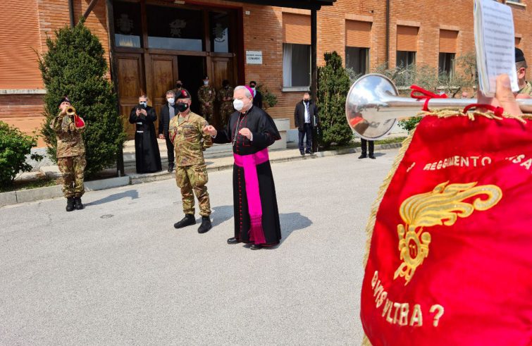 L’arcivescovo ordinario militare per l’Italia (Omi), mons. Santo Marcianò, si è recato in visita all’11° Reggimento Bersaglieri ad Orcenico Superiore ed ha presieduto la messa con la cerimonia di consacrazione e dedicazione della cappella della Caserma “Giovanni Leccis” alla Beata Vergine Maria del Cammino, patrona del Corpo dei Bersaglieri, ed a San Giovanni XXIII Papa, patrono dell’Esercito italiano. Alla funzione religiosa, svoltasi nel rispetto delle misure anti Covid-19, era presente il generale Roberto Banci, Comandante della 132^ Brigata corazzata “Ariete”, assieme ai sindaci dei comuni di Zoppola e Casarsa della Delizia, Francesca Papais e Lavinia Clarotto, ed i rappresentanti dell’Associazione nazionale Bersaglieri, tra i quali il presidente regionale per il Friuli Venezia Giulia, Giuseppe Iacca, e il presidente regionale per il Veneto, Antonio Bozzo. Al termine della cerimonia, come raccontato sul sito dell’Esercito italiano, mons. Marcianò ha firmato l’Albo d’onore nella sala museale della caserma e si è intrattenuto a colloquio con il colonnello Diego Cicuto, Comandante dell’11° Reggimento Bersaglieri, sottolineando l’importanza di un luogo di culto per la preghiera all’interno delle strutture militari dove operano uomini e donne in divisa, al servizio quotidiano del Paese.