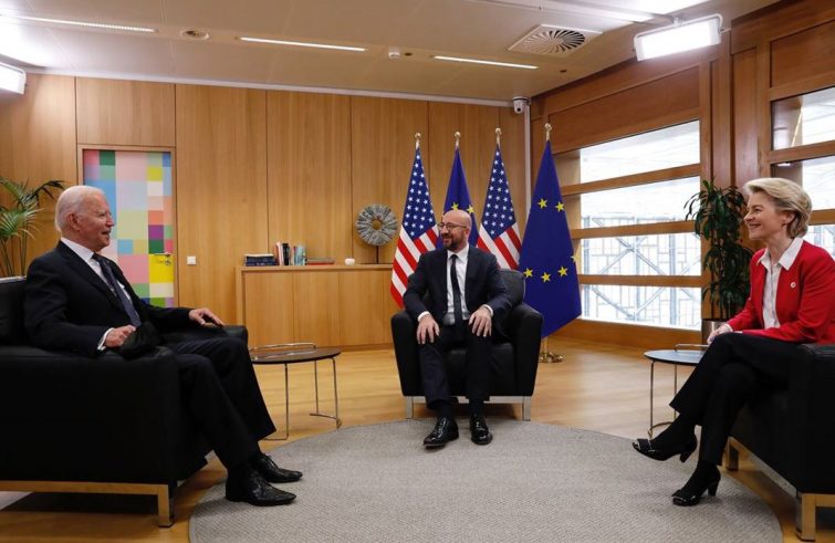 “Una energica ripartenza della collaborazione con gli Usa”, nelle parole del presidente del Consiglio europeo Charles Michel; un “eccellente incontro tra amici e alleati”, secondo la presidente della Commissione europea Ursula von der Leyen: queste le immagini usate in conferenza stampa per riferire del clima che ha segnato le ore di confronto tra i leader europei e il presidente americano Joe Biden oggi a Bruxelles. “Dopo vent’anni di controversie, si è aperto un nuovo capitolo sulla vicenda degli aerei”, il primo punto annunciato dalla presidente von der Leyen, che ha elogiato e ringraziato i team negoziali da entrambe le parti. Ora un gruppo di lavoro sarà incaricato di affrontare caso per caso le controversie pendenti. Diverse le convergenze Ue-Usa raggiunte in ambito commerciale, a partire dalla decisione di istituire un “Consiglio commerciale e tecnologico Ue-Usa” che avrà il compito di adattare l’enorme flusso commerciale Ue-Usa (che nel 2020 è stato pari a un trilione di euro, ha ricordato von der Leyen) al mutare dei contesti e in particolare per “evitare barriere ingiustificate”. Si è ripreso il confronto e si sono fatti passi avanti anche sui semi-conduttori, l’intelligenza artificiale, la cybersicurezza, la tassazione, acciaio e alluminio, ha elencato la presidente. Rispetto alla “priorità condivisa” della salute, l’obiettivo è vaccinare i due terzi della popolazione mondiale entro la fine del 2022, ha spiegato Michel. Ue e Usa costituiranno una “taskforce vaccini” in grado di “individuare e risolvere” i problemi che ostacolano la possibilità di “vaccinare più velocemente il mondo” e in prospettiva le due grandi democrazie mondiali lavoreranno per la riforma dell’Oms.