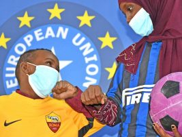 Consegnato in Somalia nei giorni scorsi tutto il materiale sportivo arrivato dalle società italiane AC Milan, S.S. Lazio, FC Internazionale, SSC Napoli e AS Roma, che hanno aderito al progetto “Supporto allo Sport”, fortemente voluto dal generale Fabiano Zinzone, comandante della missione Eutm-S (European union training mission in Somalia), che ha curato i rapporti di collaborazione con le società sportive italiane per sostenere le discipline maggiormente praticate in Somalia: calcio, pallacanestro e pallavolo. Indispensabile per il progetto anche il supporto dell’ Aeronautica militare che ha trasportato tutto il materiale dall’aeroporto di Pratica di Mare all’Aden Adde International Airport di Mogadiscio. L’intenzione è quella di aiutare i giovani somali a trovare più motivazione nell’impegno verso una disciplina sportiva, evitando il rischio di cadere nella trappola della criminalità, una grave problematica che negli ultimi decenni ha dimostrato di essere spesso l’alternativa alla miseria che soffoca questo paese del Corno d’Africa. Tutto il materiale è stato distribuito ad alcune squadre che militano nei campionati locali, nello specifico al Balaad FC, Heegan FC, Hilaac FC e Dhexe FC, oltre cha alla Horsed Beach di Mogadiscio, una squadra di Beach football, disciplina molto praticata lungo le spiagge del luogo. Assieme alle società sportive, anche i bambini dell’orfanatrofio “Dr. Kadare” di Mogadiscio che hanno ricevuto numerose magliette ed alcuni palloni. “Grazie per il vostro aiuto, per tutto quello che avete donato ai bambini dell’orfanatrofio per aiutarli a sperare in un futuro migliore”, le parole del responsabile del Dipartimento dell’educazione e degli orfanatrofi di Mogadiscio, Col. Osman Warsame, riportate sul sito del ministero della Difesa dove si racconta la gioia dei bambini nel ricevere questa donazione. “A nome mio e di tutti i giovani ringrazio l’Italia e le società di calcio di Milan, Inter, Lazio, Roma e Napoli per il prezioso supporto che oggi ci avete dato, un contributo che apprezziamo molto. Il vostro Paese ha sempre aiutato il popolo somalo e di questo ne siamo particolarmente fieri”, ha dichiarato il vice ministro dello Sport, H.E. Ahmed Omar Islaw, riportate sul sito del ministero della Difesa. “Aiutare i giovani in un paese come la Somalia rappresenta un gesto di grande valore, e questo è dimostrato oggi anche dai sorrisi e dall’emozione che ho visto nei volti di questi ragazzi nel momento in cui hanno indossato le maglie di squadre importanti, che sicuramente avranno un grande significato anche dal punto di vista della motivazione a fare sempre meglio in questo sport. Viva la Somalia, viva l’Italia!”, il saluto del generale Fabiano Zinzone che ha personalmente ringraziato i club italiani che hanno reso possibile la concretizzazione del progetto.