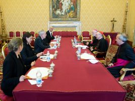 Il Papa ha ricevuto oggi in udienza il presidente della Repubblica d’Austria, Alexander Van der Bellen, il quale si è successivamente incontrato con il cardinale segretario di Stato, Pietro Parolin, accompagnato da mons. Paul Richard Gallagher, segretario per i Rapporti con gli Stati. “Durante i cordiali colloqui – informa la Sala Stampa della Santa Sede – è stato espresso compiacimento per le buone relazioni tra la Santa Sede e l’Austria. Ci si è poi soffermati su questioni geopolitiche, di ambito europeo e internazionale, e non si è mancato di rilevare il ruolo della Chiesa nella promozione della solidarietà per favorire la pace e la fraternità universale e nella cura del creato”.