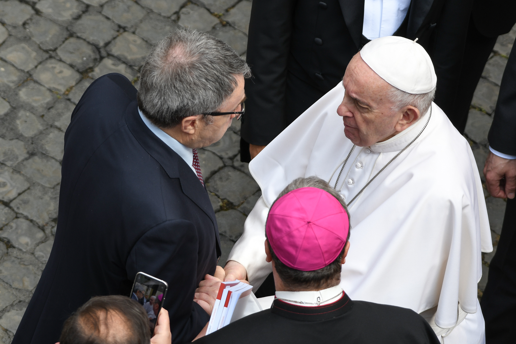 Una delegazione della diocesi di Teramo-Atri ha partecipato questa mattina all’udienza generale di Papa Francesco nel Cortile di San Damaso, con rappresentanti dell’Ufficio scolastico regionale e provinciale e dei dirigenti scolastici della provincia di Teramo e dell’Abruzzo. Nei saluti ai fedeli Bergoglio ha ricordato “gli studenti della Regione Abruzzo che hanno partecipato al concorso sul presepe”. Al termine della catechesi, il vescovo Lorenzo Leuzzi ha consegnato nelle mani del Papa gli atti del recente convegno “Con i giovani protagonisti nella storia. Gli adolescenti e il patto educativo e inter-generazionale” organizzato il 7 e 8 maggio scorsi dalla diocesi di Teramo-Atri e dall’Ufficio scolastico regionale in preparazione all’ultima edizione della veglia mariana internazionale dei giovani svoltasi nel santuario di San Gabriele dell’Addolorata. Lo stesso documento è stato consegnato anche al ministro dell’Istruzione, Patrizio Bianchi, incontrato a seguire nella sede del ministero. “Sia Papa Francesco che il ministro Bianchi hanno espresso soddisfazione per questo impegno al servizio degli adolescenti”, ha commentato mons. Leuzzi. “Presentare loro i risultati dello sforzo di tante realtà al servizio dei ragazzi – le parole del vescovo riportate nel comunicato stampa della diocesi aprutina – ci esorta a continuare in questo cammino a favore del patto educativo e in aiuto ai giovani come priorità nella fase post Covid-19. È nella formazione che i ragazzi potranno trovare un orizzonte di senso per la propria esistenza”. “Abbiamo lavorato tantissimo e in condizioni molto difficili in quest’ultimo anno, ma abbiamo ottenuto grandi risposte in termini di capacità, competenze ed entusiasmo. Mai come in questo momento il Paese si è accorto della centralità della scuola, della sua importanza nella vita della comunità”, ha dichiarato il ministro Bianchi: “A chi ci domanda ‘torniamo alla normalità?’ noi rispondiamo che non ci possiamo accontentare ma stiamo andando oltre, e lo stiamo facendo tutti insieme. Questa è la chiave fondante della nuova fase della scuola”.