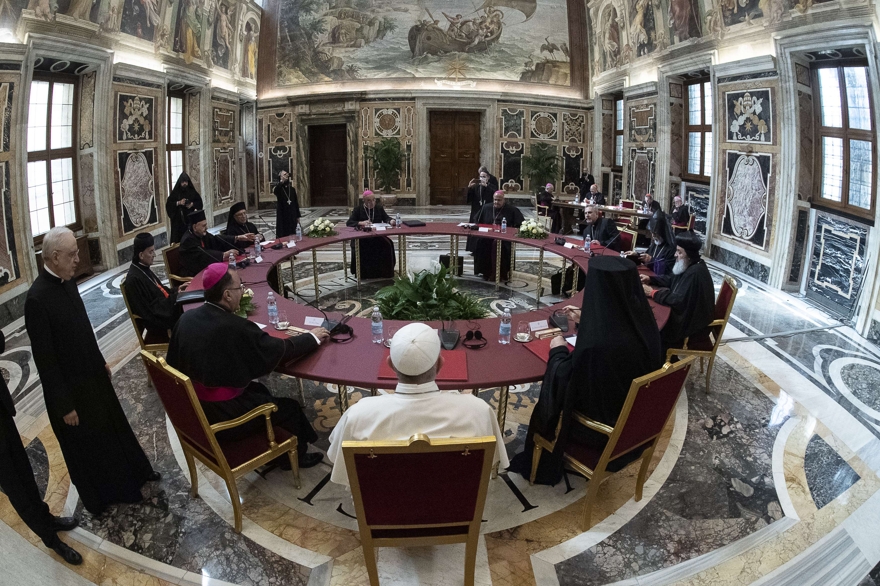 È cominciata con un momento di preghiera davanti all’Altare della Confessione la Giornata di riflessione e di preghiera per il Libano. Il Papa e i leader delle principali confessioni hanno recitato il Padre Nostro in arabo, intonato dal Papa, e poi sono scesi nella cripta per pregare dinanzi alla tomba di San Pietro, accendendo ognuno una candela. Prima dell’incontro di preghiera in basilica, il Santo Padre ha salutato i responsabili della comunità cristiane libanesi e i membri delle delegazioni a Casa Santa Marta. I lavori proseguiranno nella Sala Clementina con tre sessioni di confronto e consultazioni, con la sola pausa del pranzo a Santa Marta, e si concluderanno alle 18 con la preghiera ecumenica per la pace, di nuovo nella basilica di San Pietro.