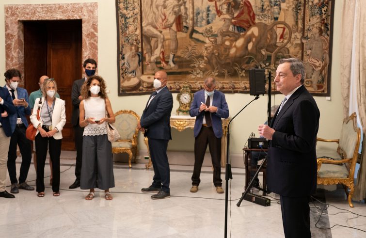 “Volevo ringraziarvi, visto che per un paio di settimane non ci saranno Consigli dei ministri, per come avete accompagnato in questi quasi primi sei mesi di Governo l’azione mia e dei ministri. Volevo anche augurarvi buone vacanze e augurare buone vacanze a tutti gli italiani”. Con queste parole il presidente del Consiglio, Mario Draghi, ha iniziato l’incontro con i giornalisti per un saluto informale prima della pausa estiva.