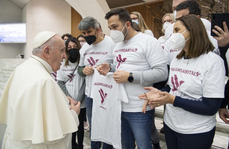 “Saluto i lavoratori della Compagnia aerea AirItaly, ed auspico che la loro situazione lavorativa possa trovare una positiva soluzione, nel rispetto dei diritti di tutti, specialmente delle famiglie”. È l’appello del Papa, al termine dell’udienza di oggi in Aula Paolo VI, durante i saluti ai fedeli di lingua italiana che come di consueto concludono l’appuntamento del mercoledì con i fedeli. “È importante custodire i diritti lavorativi di tutti”, ha proseguito Francesco, che poi ha ricordato, come aveva fatto anche in diversi saluti nelle altre lingue, la Settimana di preghiera per l’unità dei cristiani, iniziata ieri: “Ci invita a chiedere al Signore con insistenza il dono della piena comunione tra i credenti”, le parole del Papa.